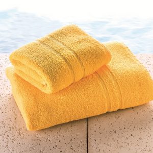 Juego de Toalla y Toallón Seclar Línea Blue con cenefa. Apto uso profesional. Alta resistencia a los lavados. Tejido muy suave y absorbente.
